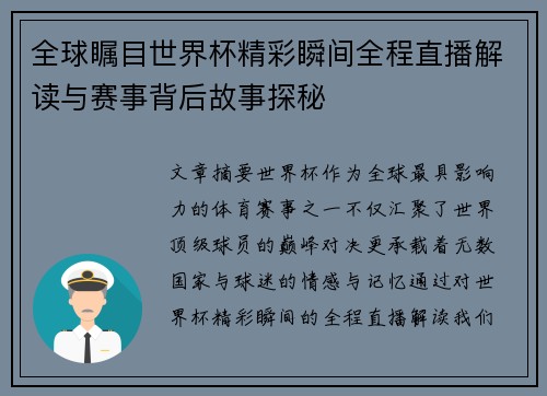 全球瞩目世界杯精彩瞬间全程直播解读与赛事背后故事探秘